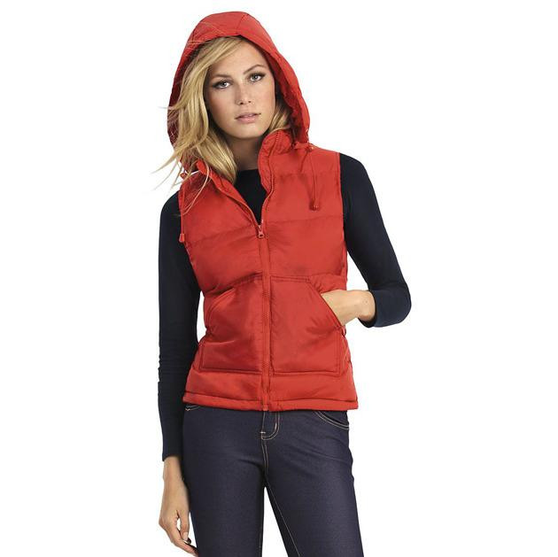 Gilet imbottito trendy e femminile. Linea femminile. Cappuccio rimovibile tramite zip. Cappuccio regolabile. 2 tasche laterali. Orlo inferiore con coulisse regolabile. Stampa e ricamo facilitato grazie alla chiusura zip invisibile a mezza schiena